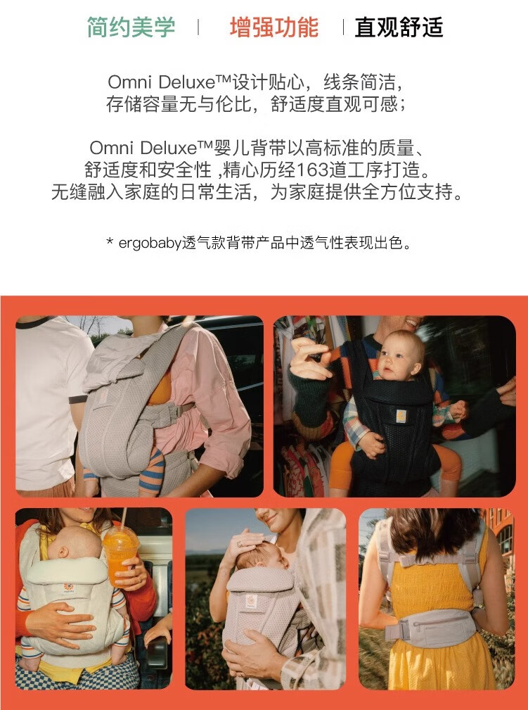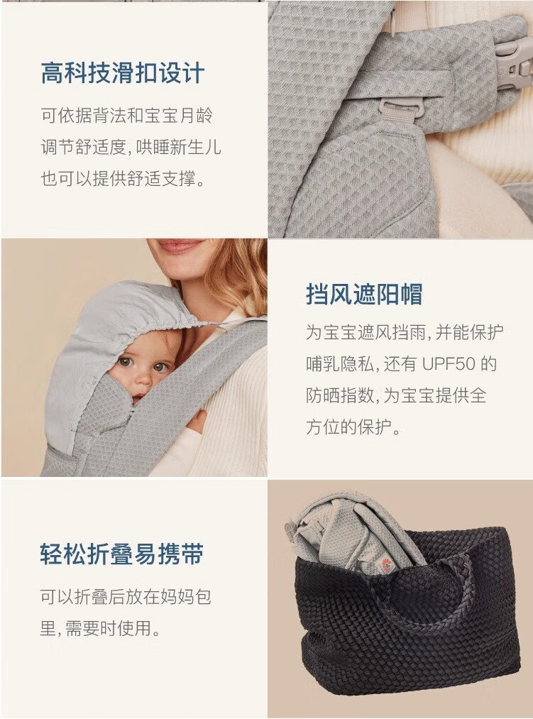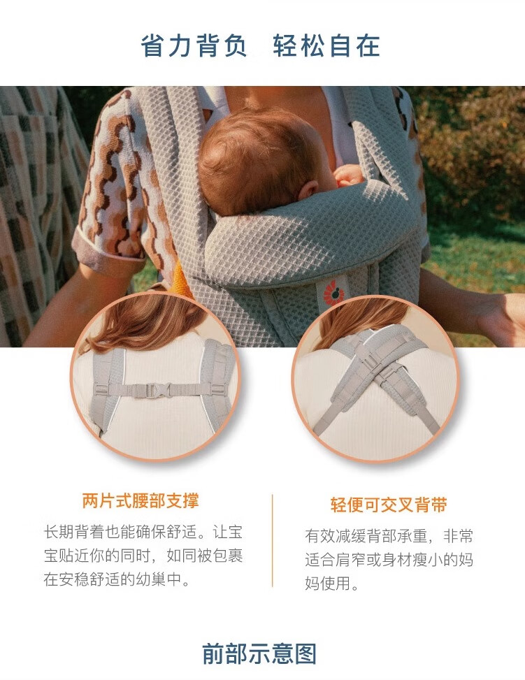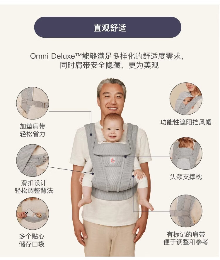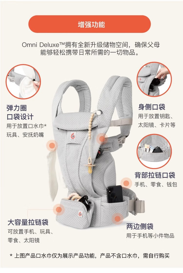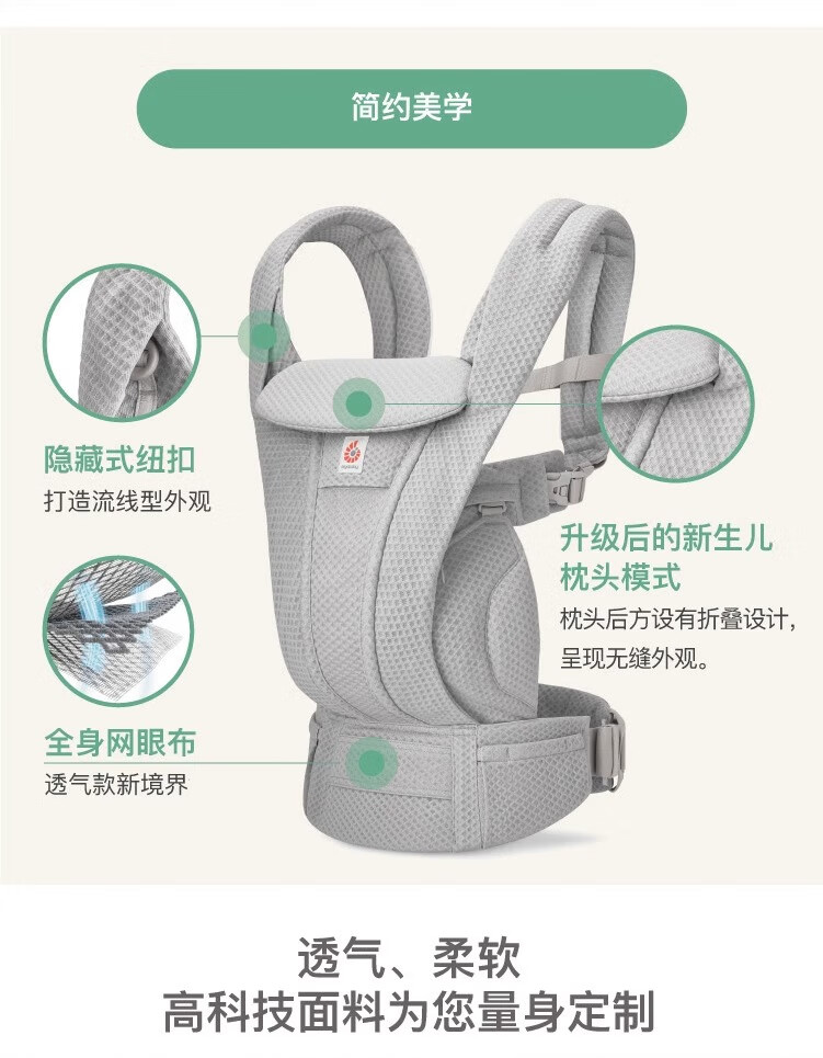 ERGObaby美国二狗婴儿背带柔软透气Deluxe腰凳舒适满月即用带娃神器灰色