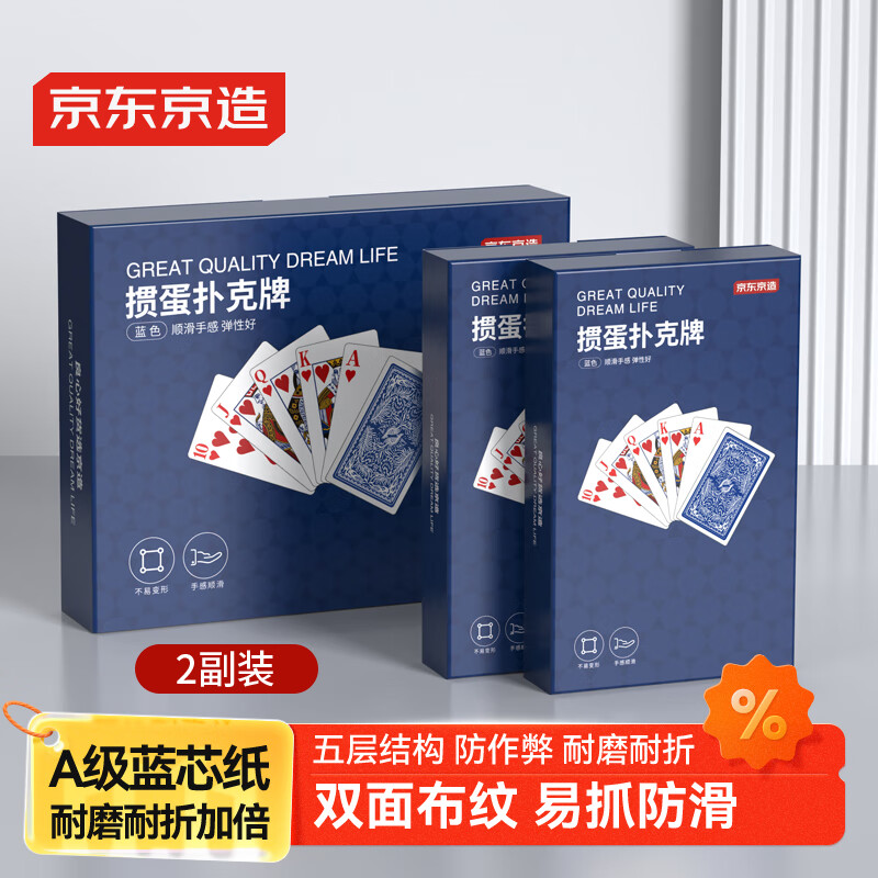 京东京造 A级蓝芯掼蛋 比赛专用扑克牌 耐用耐折防作弊 大字纸牌 2副