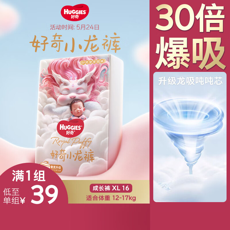 好奇(Huggies)皇家小龙裤拉拉裤XL16片(12-17kg)尿不湿【30倍爆吸】